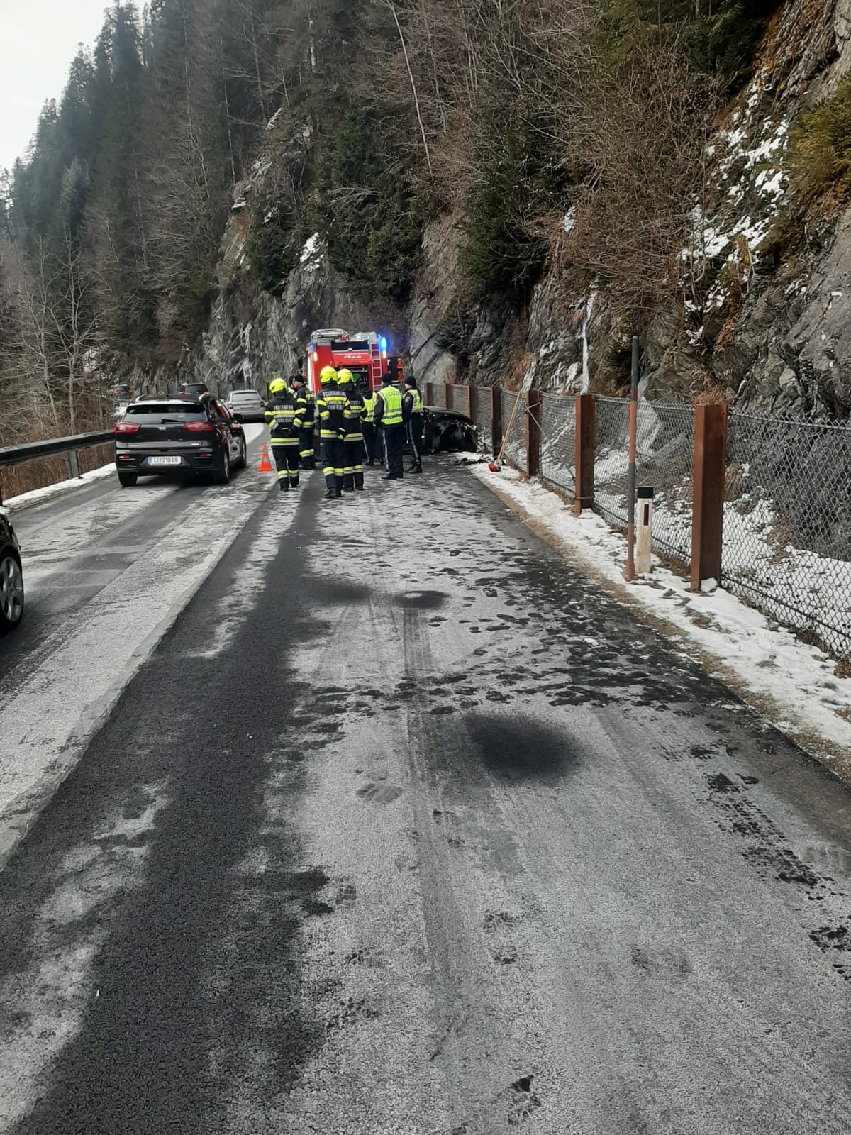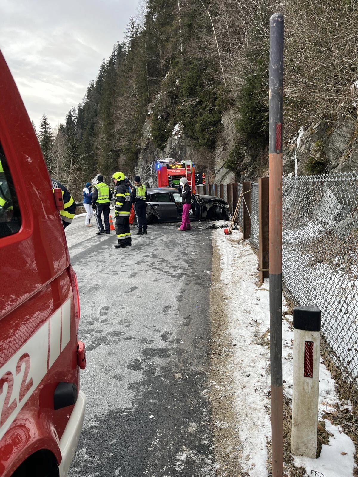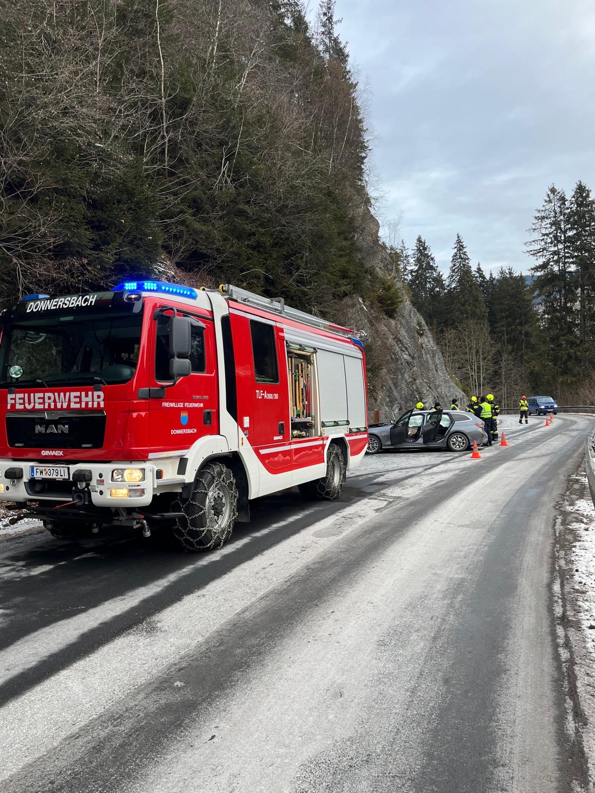 Die Feuerwehr Donnersbach wurde über das E-Call-System eines Fahrzeugs zu einem Verkehrsunfall auf der B75 bei Kilometer 11 in Fahrtrichtung Donnersbachwald alarmiert.